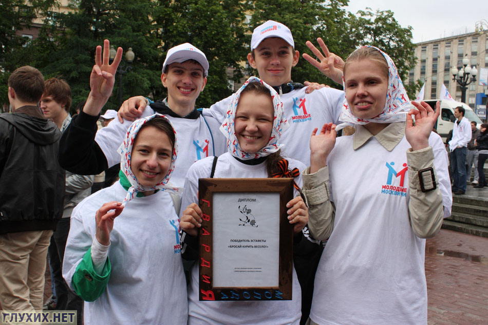 31 мая на Пушкинской площади под знаменем Молодой Гвардии Единой России прошла акция «День отказа от курения», в ней приняли участие не только слышащие, но и глухие. На огороженной площадке, естественно, никто не курил.
