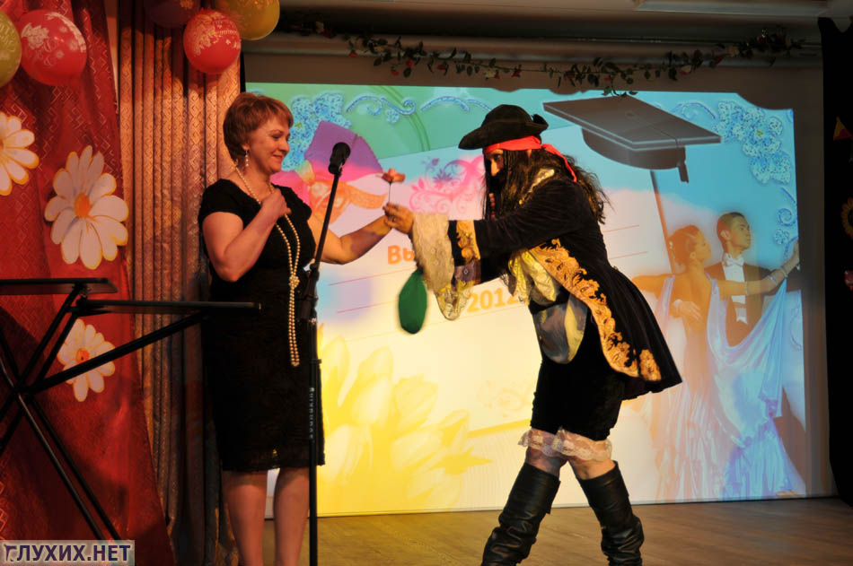 Конечно, Людмила Григорьевна ни задаром, ни за деньги не дала этому необразованному проходимцу аттестат. Тогда Джек Воробей рассердился, схватил директора, связал ей руки, ноги и побежал к ребятам в актовый зал. Спереть аттестат, видимо. Джек наверняка заставил бы пройти кого-нибудь из выпускников по узкой доске под дулом пистоля, но Людмила Григорьевна вовремя освободилась из плена и побежала догонять хулигана.