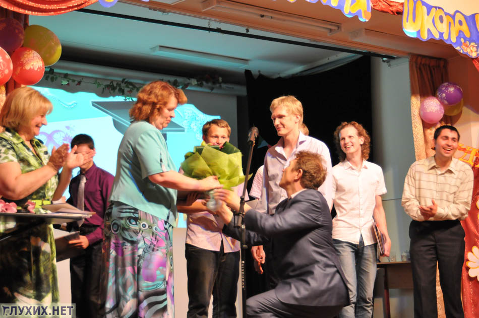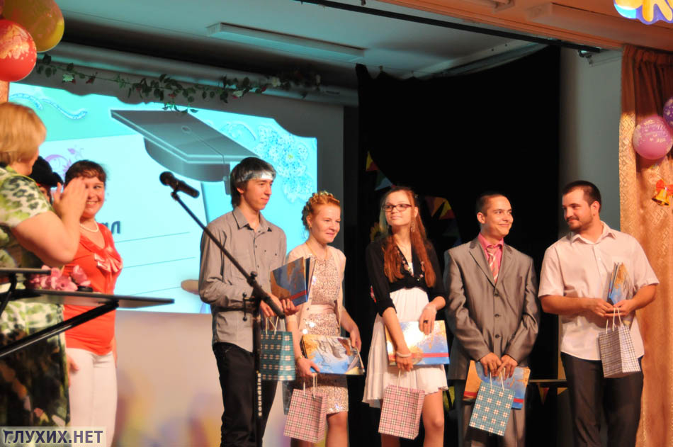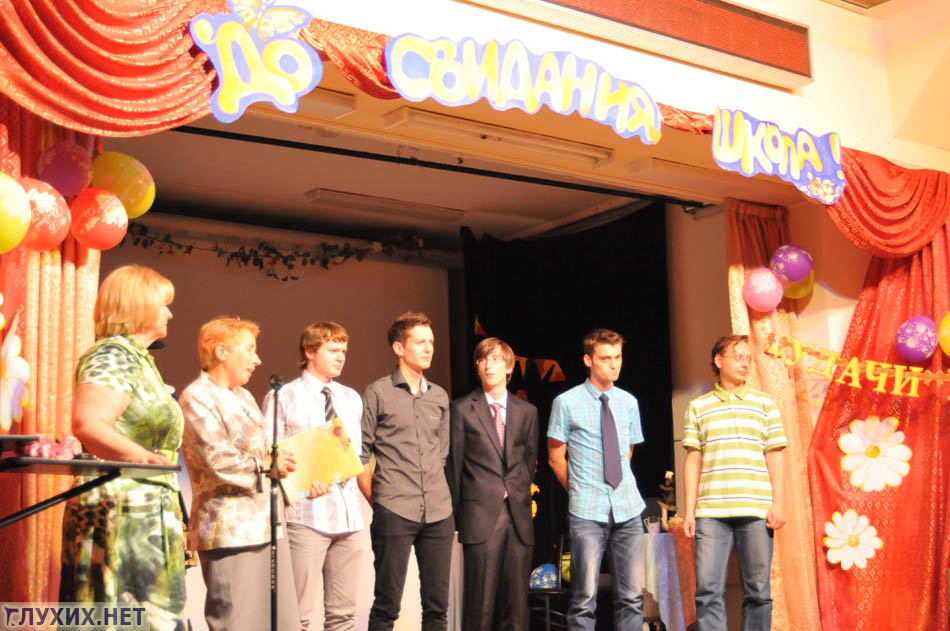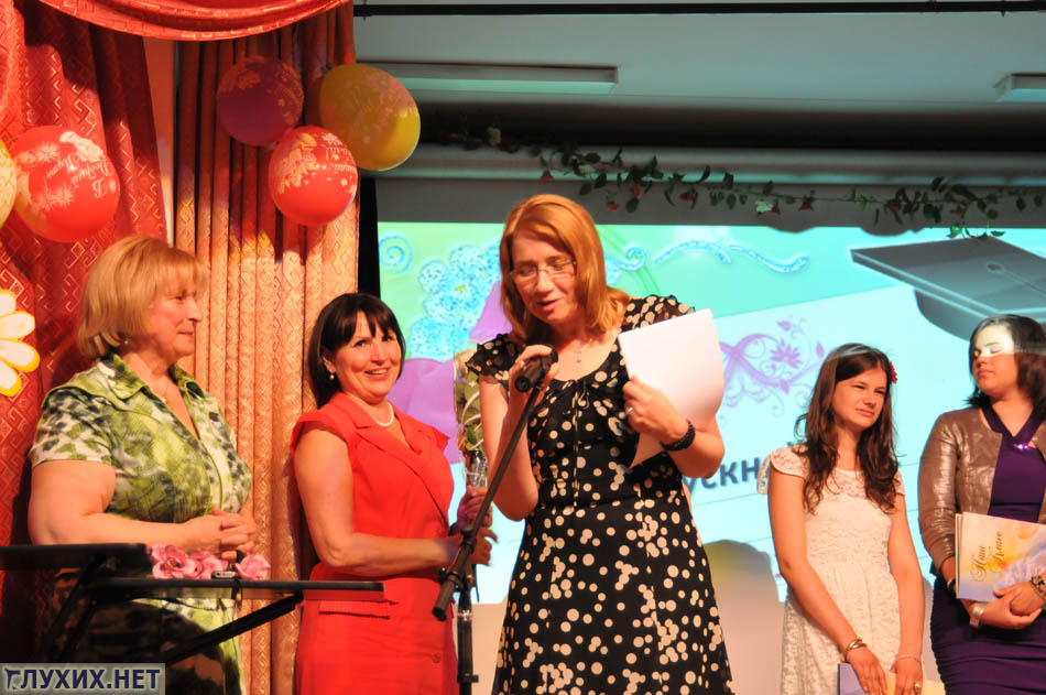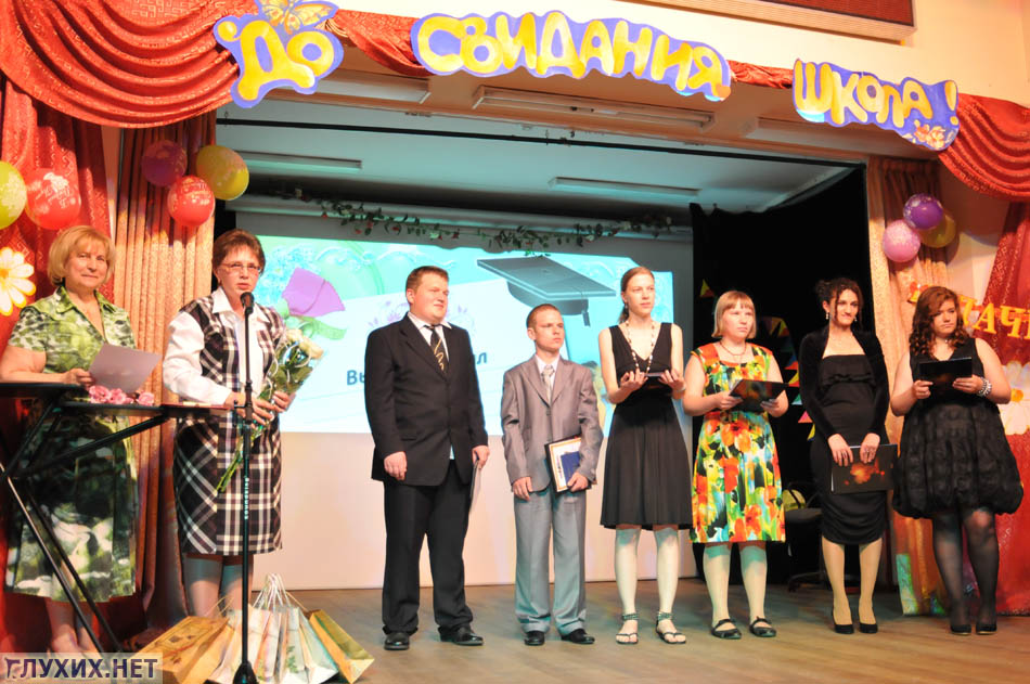 Далее состоялся тёплый праздничный концерт под руководством Андреевой Лады Витальевны. Учителя прощались со своим классом. Конечно, не обошлось без трогательных сцен и волнующих моментов. Ведь аттестат о полном (общем) образовании выдаётся один раз в жизни! Программу переводили переводчики жестового языка Елисеева Светлана Владимировна, Иванова Ольга Васильевна и Котова Марина Николаевна.