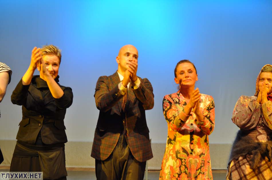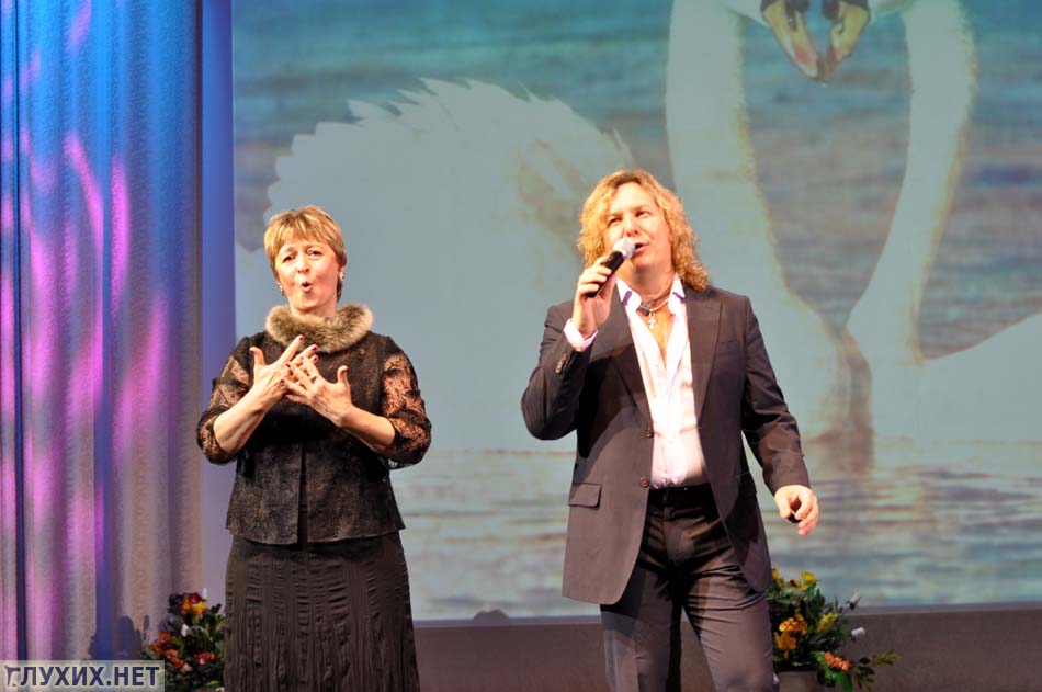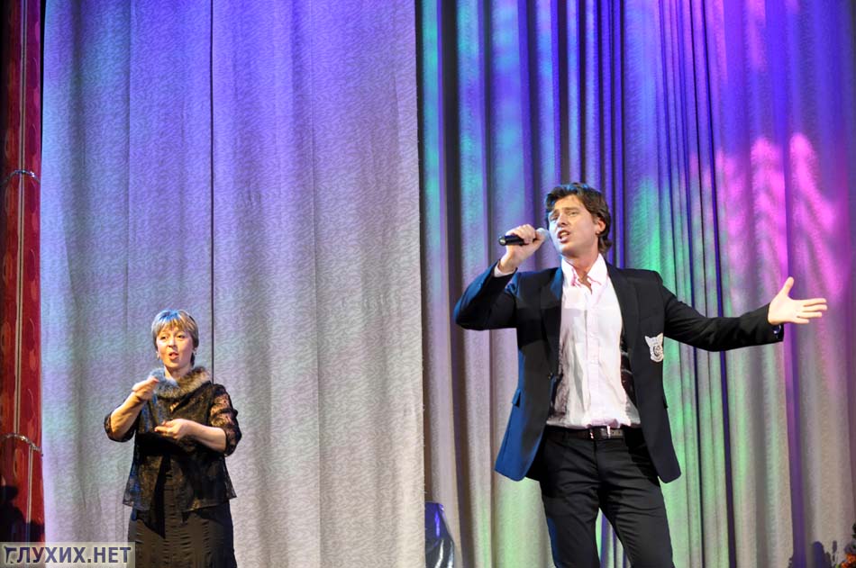2. Если выступают слышащие артисты, можно было заранее подготовить совместные номер(а) из числа активистов и артистов. А было бы лучше если бы выступили школьники = на них всегда радостно смотреть. Бедная переводчица:)))