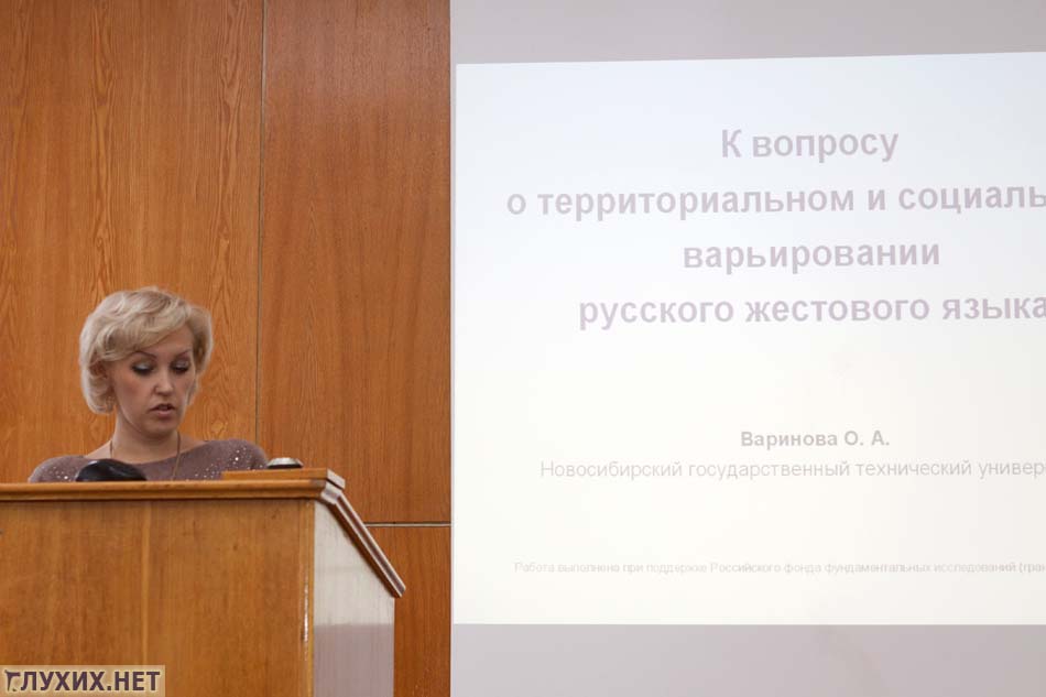 На конференции присутствовали гости из Новосибирского государственного технического университета. В стенах этого университета ведется настоящая работа по изучению русского жестового языка. Как выразился А. А. Кибрик, – без новосибирцев этой первой конференции не было бы. Как-никак, новосибирцев было четверо, а это треть всех выступающих на конференции. Всего было 13 лекторов-специалистов.