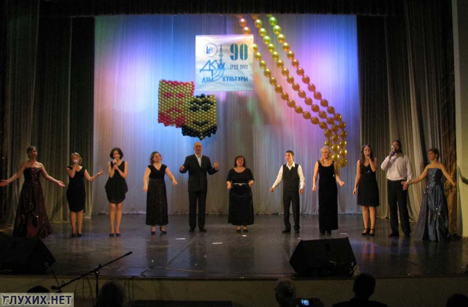 Естественно, возникает вопрос, а почему юбилей отмечается не в стенах самого ДК ВОГ? Ответ простой: зал в ДК небольшой, на 150 мест, администрации ДК пришлось взять в аренду большой зал, чтобы праздничный концерт могло посетить много народу. В КДЦ «Московский» зал вместил в себя почти 900 человек.