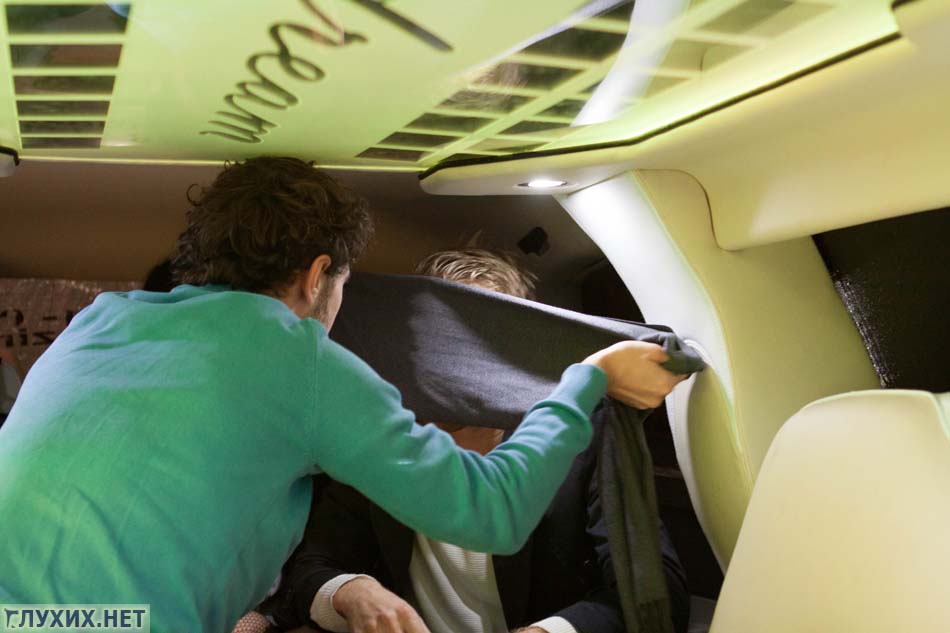 Друзья Джеймса и коллеги-журналисты колесили с ветерком на этой огромной белой машине по Москве, лихо, минуя легендарные столичные пробки. Зато пробками стреляли в самой машине – звучали разные тосты и поздравления. Автомобилька успешно промчалась мимо разных знаменательных мест нашего столичного города. Время пролетело быстро и незаметно. К 19 часам лимузин доставил компанию к зданию театра Мимики и Жеста.