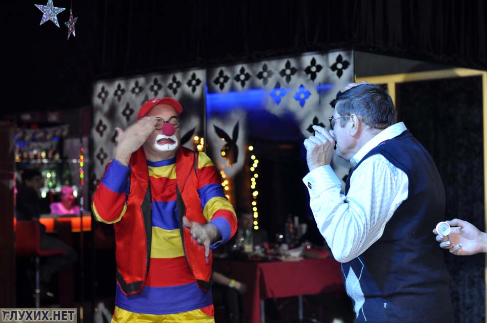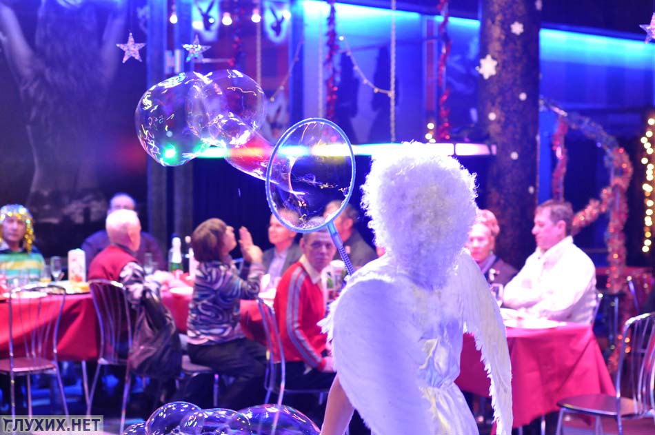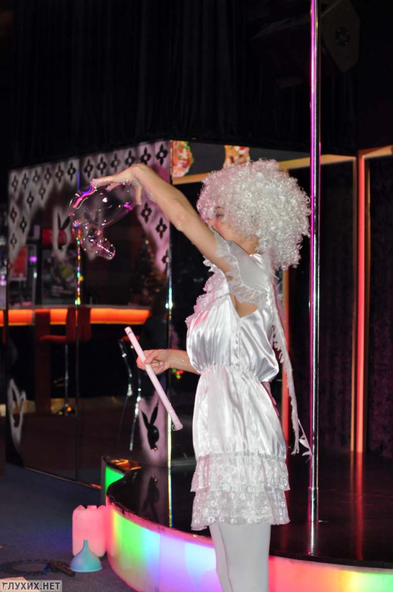 Эльф-ангелочек пускала мыльные пузыри разнообразных размеров, используя только пальцы своих рук, выдувая сквозь них огромные пузыри, удивляя всех размером и их формой. Какой же ночной клуб без стриптиза! Выступал и разноцветный клоун с пародией на стриптиз, в качестве танцоров, которых выступали зрители. После этого был показан танец с элементами