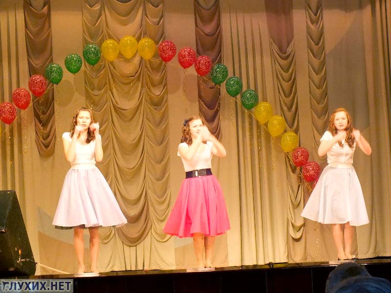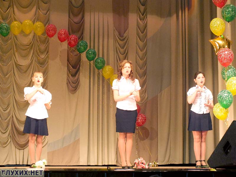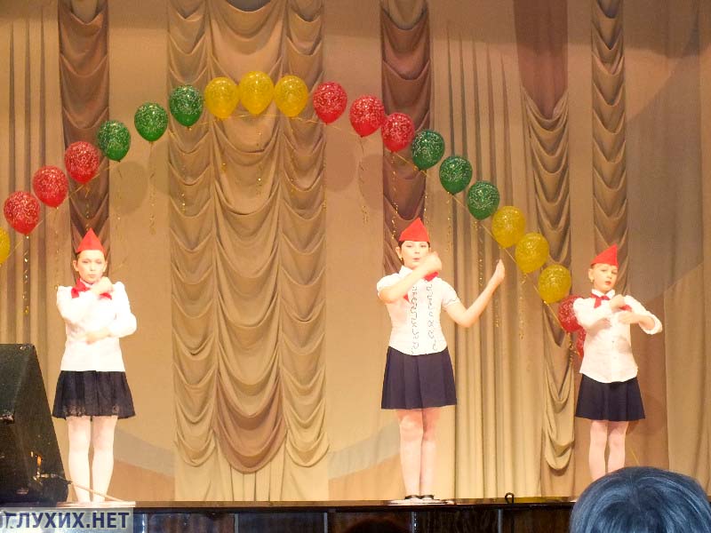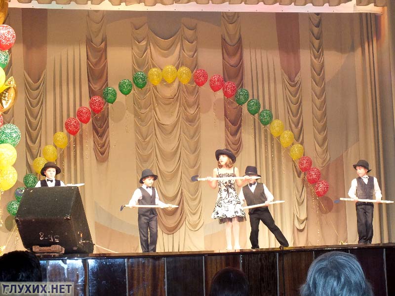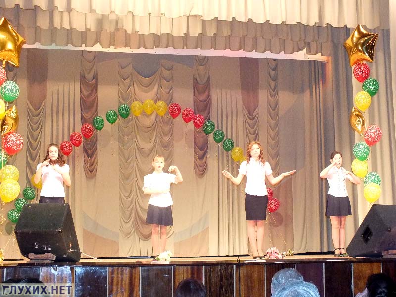 Отмечу то, что участников было много. Это говорит о том, что в школе для детей с нарушением слуха, в обоих отделениях – на Казахской и на Бушмакина, уделяется достаточно серьезное внимание раскрытию творческого потенциала детей с нарушением слуха. Радует то, что номера в основном массовые, красочные...НО...Если говорить об исполнении жестовой песни, то основной недостаток или ошибка, называйте это как хотите, однообразие и бедность самих жестов, задействованных в песнях. Это говорит о том, что в школах еще имеет место стереотип неприятия жестового языка».