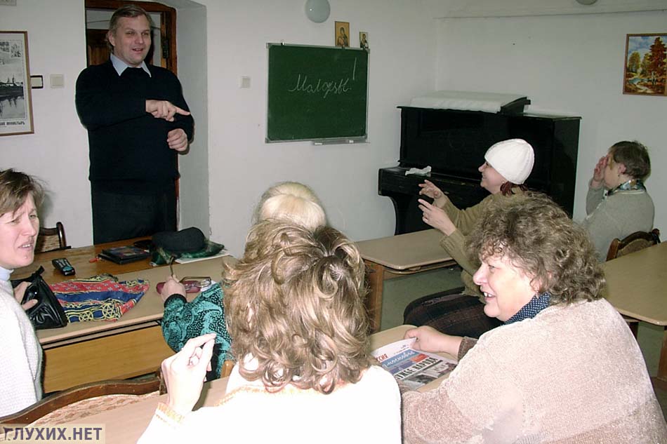 Анатолий Фролов. Он же помог всем – дал помещение для еженедельных занятий, закупил необходимую технику (телевизор, проектор с экраном), на паломнические экскурсии выделяет микроавтобус. Каждую субботу проводятся занятия по основам православной культуры для всех желающих. Ведёт их глухой преподаватель