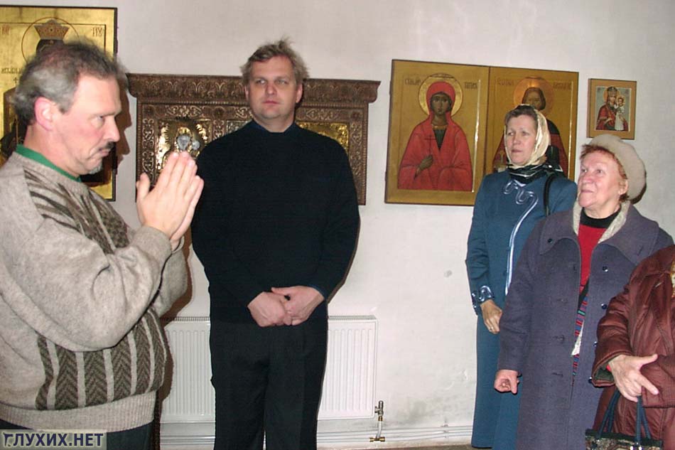 Периодически проводятся Литургии с участием неслышащих прихожан – к нам в гости приезжает протодиакон Павел Трошинкин из Москвы. Он и переводит всю службу на понятный для глухих жестовый язык – любо-дорого смотреть!