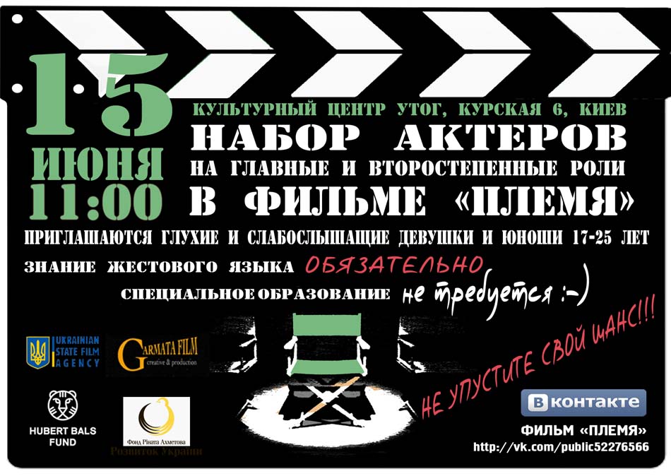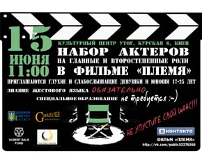 15 июня в 11:00 в Киеве, в Культурном центре УТОГ, ул. Курская, 6 состоится набор актеров на фильм «Племя».