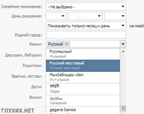 Для того чтобы внести соответствующие изменения, вам необходимо проделать следующую операцию: «Моя страница» – «Редактировать страницу» – вкладка «Основное» – Языки (из списка выбрать «Русский жестовый») — «Сохранить». Конечно, эта функция пригодится не только глухим, но и всем слышащим людям, которые владеют жестовым языком.