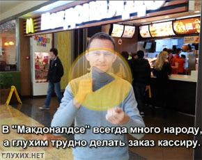 «Макдоналдс». Как правило, в «Макдоналдсе» вечно большие очереди, а у глухих и слабослышащих посетителей часто возникают трудности при заказе на кассе.