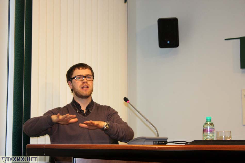 водят грузовики, легкие самолеты. На конференции поднимались проблемы коммуникации неслышащих с внешним миром, проблемы катастрофической нехватки переводчиков жестового языка, проблемы достойного образования, трудоустройства, интеграции и другие насущные для людей с нарушениями слуха проблемы.