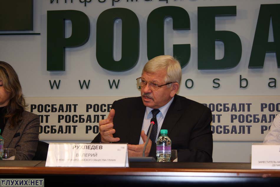 Надо заметить, что на пресс-конференции В. Н. Рухледев использовал не только устную речь, но и жестовый язык.