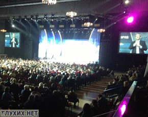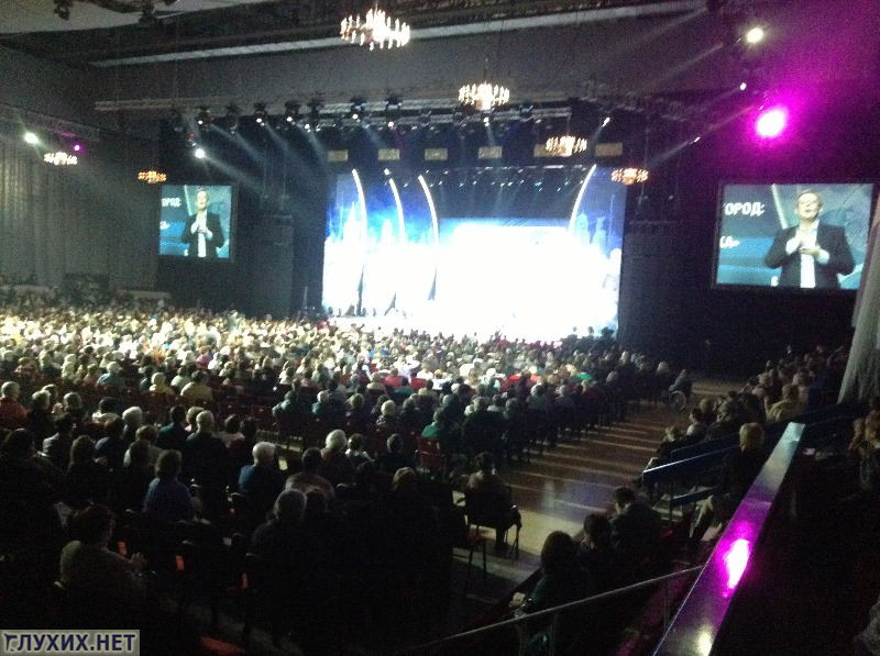 Из их слов стало понятно, что разнообразить картинку на экране они смогут, в том числе и сделать картинку в картинке, и, вроде даже, чередовать изображения на экранах, но у них приказ главного видеоинженера транслировать именно так, переводчиц на весь размер экрана и все, а не иначе. А обращаться к главвидеоинженеру нужно, поднявшись за кулисы. Путь к закулисам лежал, через vip-ряд, где присутствовали и вип – персоналии нашего маленького уютного мирка глухих, от сцены их не сразу удавалось отвлечь внимание (еще бы – артисты тут совсем рядышком, знаменитости вживую – только руку протяни, да и огромные экраны с переводчиками) и не сразу им удавалось въехать в проблему задних рядов. Тем более далеки были от этой проблемы фотокорреспонденты, ловившие удачные кадры с первых рядов.