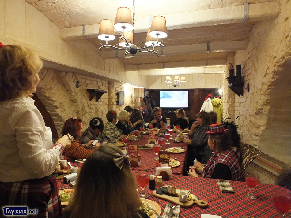 что-нибудь интересненькое, купоны и скидки на посещение выставки/сауны/ресторана/боулинга/и тому подобное. Каждая встреча всегда имеет свою «тему» – например, на одно мероприятие у всех участников должна была быть одинаковая одежда в горошек. Неважно, какого цвета и фасона одежка – главное чтоб присутствовал горошек! В другой раз у всех были шляпки одинакового цвета. Тема этой встречи была «шотландская клетка» – у всех в одежде обязательным был элемент с «клеткой
