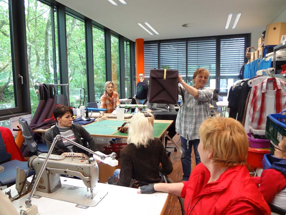 А после обеда нас возили по дуйсбургским мастерским, где работаю люди с ограничениями по здоровью. Первая мастерская была введена в эксплуатацию в 1975 году, и именно с тех пор началось сотрудничество мастерских с торговлей и промышленностью. На сегодняшний день в Дуйсбурге 4 таких мастерских. Первоначально там работало 100 человек, а теперь численность превышает 1 000 человек. Забегая вперед сразу отмечу, глухих инвалидов там мы встретили только пару человек.