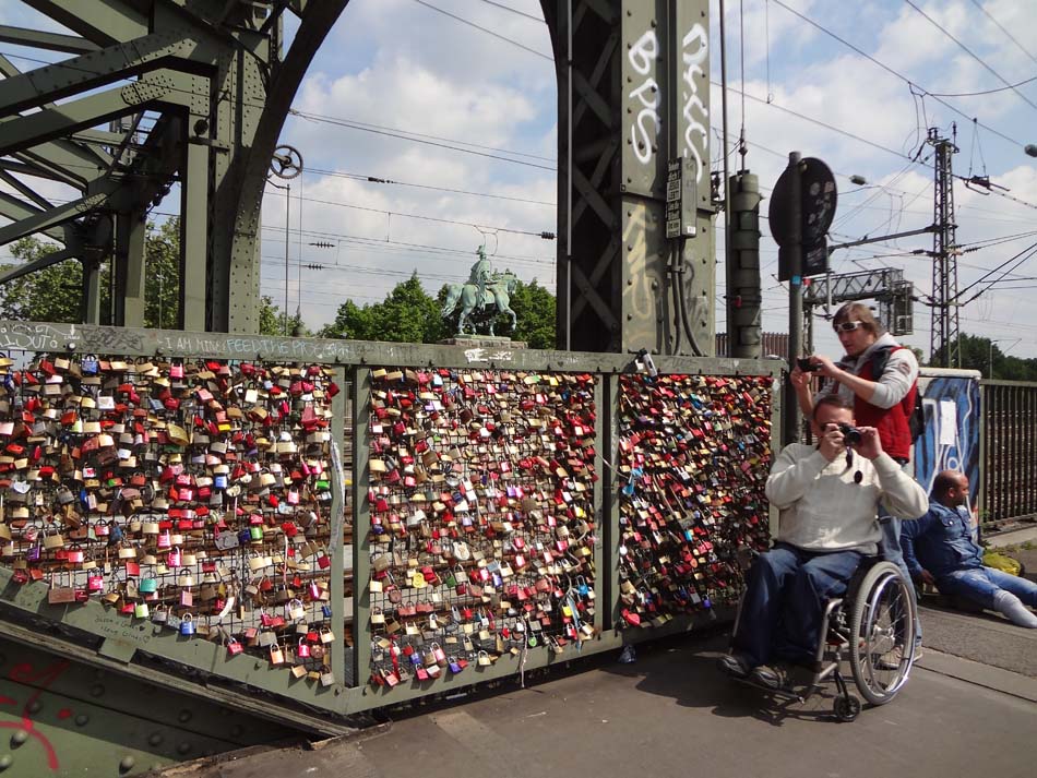 Долгий и интересный путь по мосту мы преодолели до собора. Прошли по мосту влюбленных. У нас и в России есть такие мосты, где молодожены в день бракосочетания приезжают и навешивают замочки со своими именами в знак долгой и счастливой семейной жизни. Но длина Кельнского моста и висящих замков на нем нас ошарашила.....