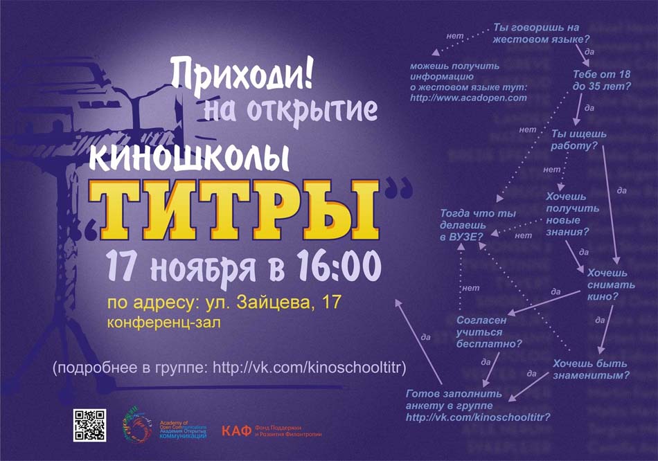 Киношкола также ищет волонтеров и желающих поделиться своим опытом.