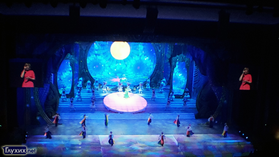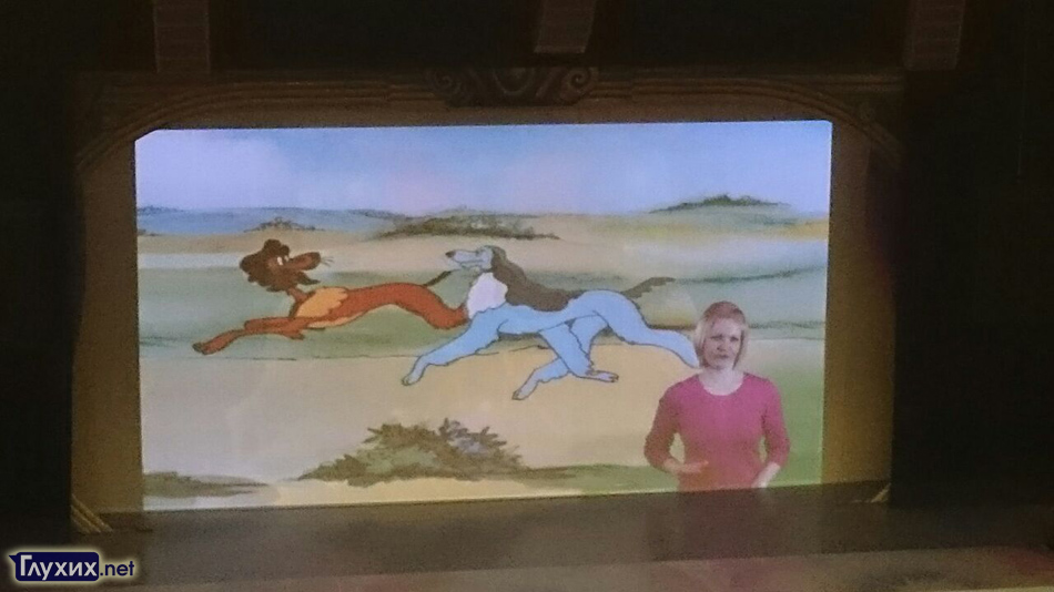 Перед началом концерта мультфильмы на большом экране, в отличие от прошлого года, сопровождались не русскими субтитрами, а переводом на жестовый язык. Причём, перевод был довольно качественный, смотреть на мультики было одним удовольствием! Переводила мультики неслышащая Антонина Шихова, преподаватель столичной школы для неслышащих детей № 65, запись перевода сделали заранее.