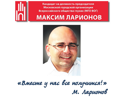 Почему я иду на выборы? Потому что мне, глухому москвичу, не безразлично, что происходит сейчас и будет происходить в родном мне столичном обществе глухих. Я вижу, какие вопросы волнуют неслышащих москвичей. Я знаю, как решить накопившиеся проблемы. Я уверен, мои знания и опыт руководителя, совместно с усилиями актива МГО ВОГ, изменят нашу жизнь к лучшему.