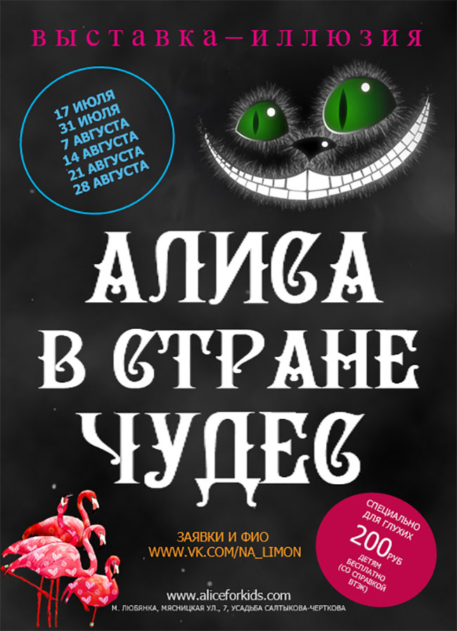Вход: Специальная цена для глухих в указанные даты 200 рублей! (а Алисам (паспорт обязателен) и детям до 3-х лет вообще бесплатно)