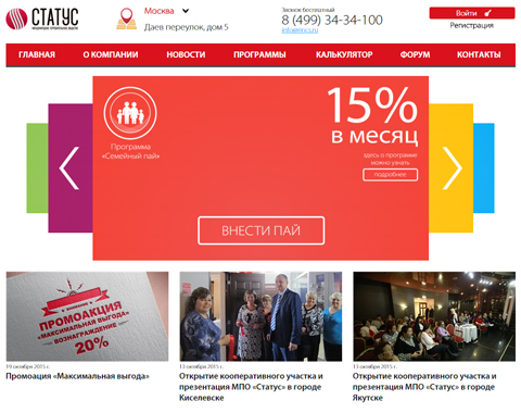 МПО «Статус». Привлекает внимание яркий современный дизайн и расширенный функционал сайта – создатели приложили усилия, чтобы сделать