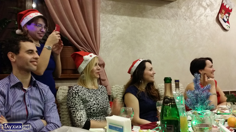 видео Новогодний огонёк «Глухих.нет» – 2016. К сожалению, в этом году нет профессиональных фотоснимков, но вы можете посмотреть любительские фотокадры гостей.