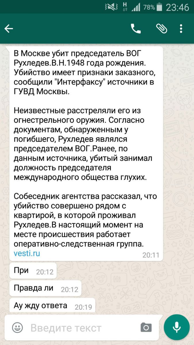 Вечером 13 февраля мир глухих всполошило известие, о том, что, якобы, у своей квартиры был убит президент