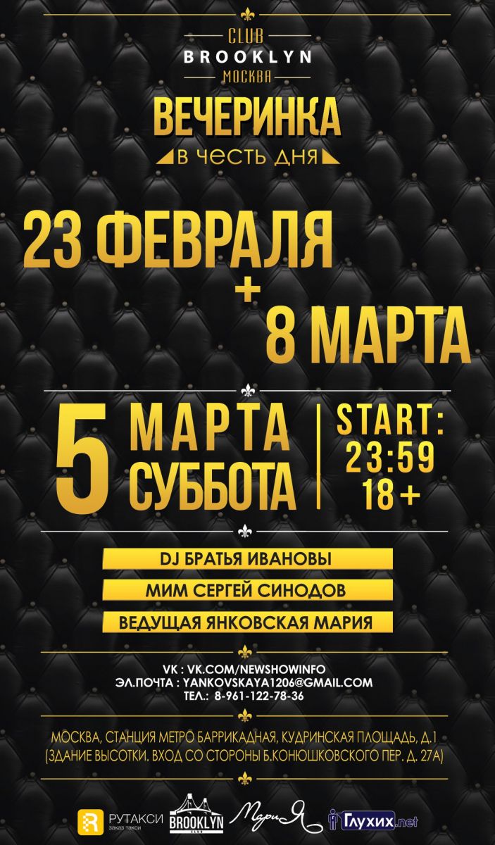 Когда: в ночь с 5 на 6 марта с 23:59 до утра (вход с 23:00).