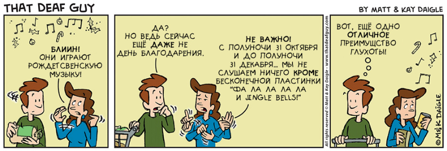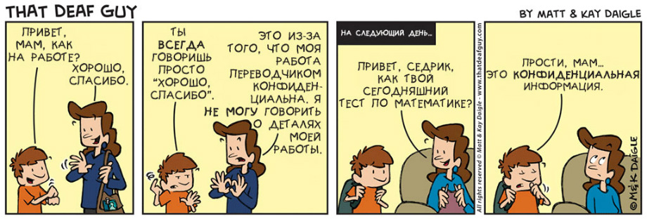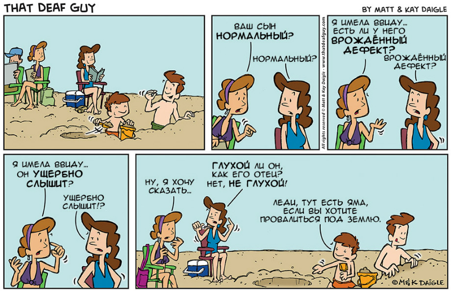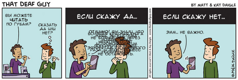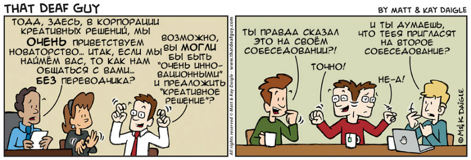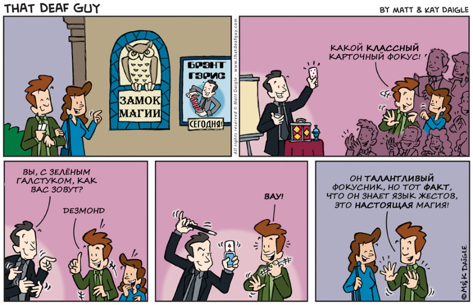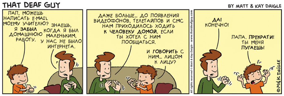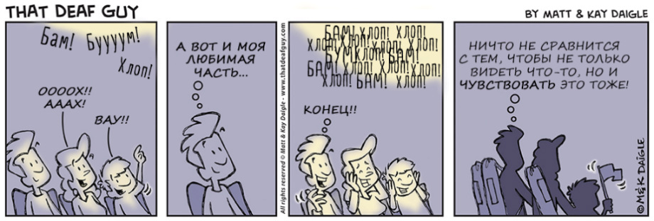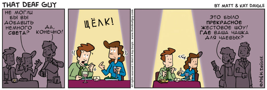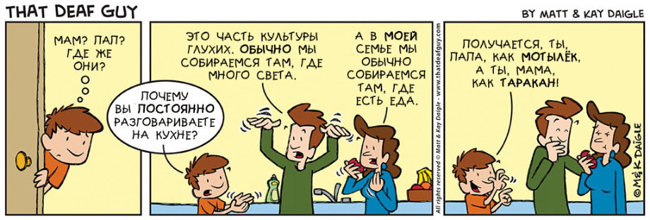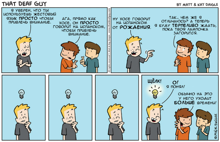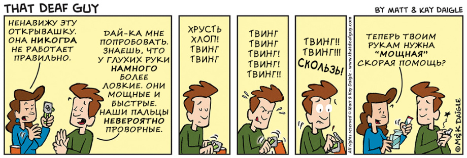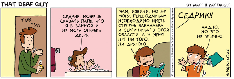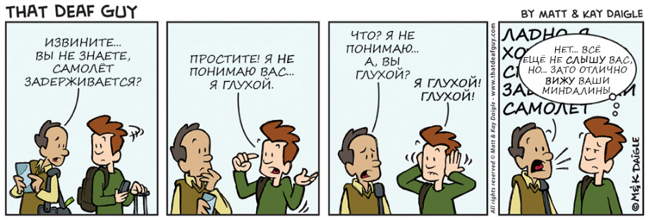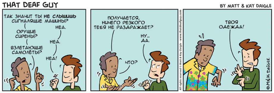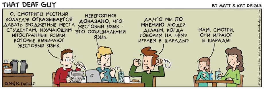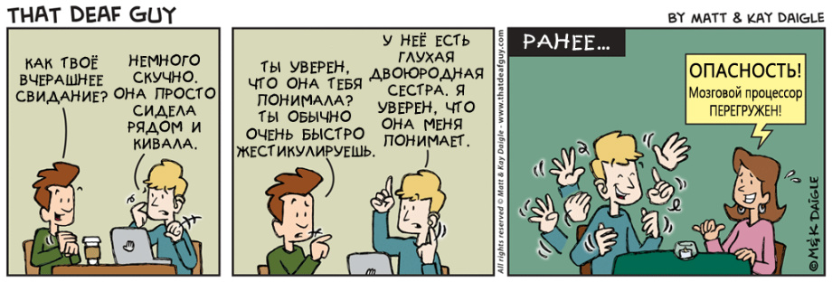 нашли совершенно замечательные комиксы о и про глухих. Портал «Глухих.нет» не смог пройти мимо, ведь эти комиксы, на наш взгляд, если не все, то большинство – правда. Авторы