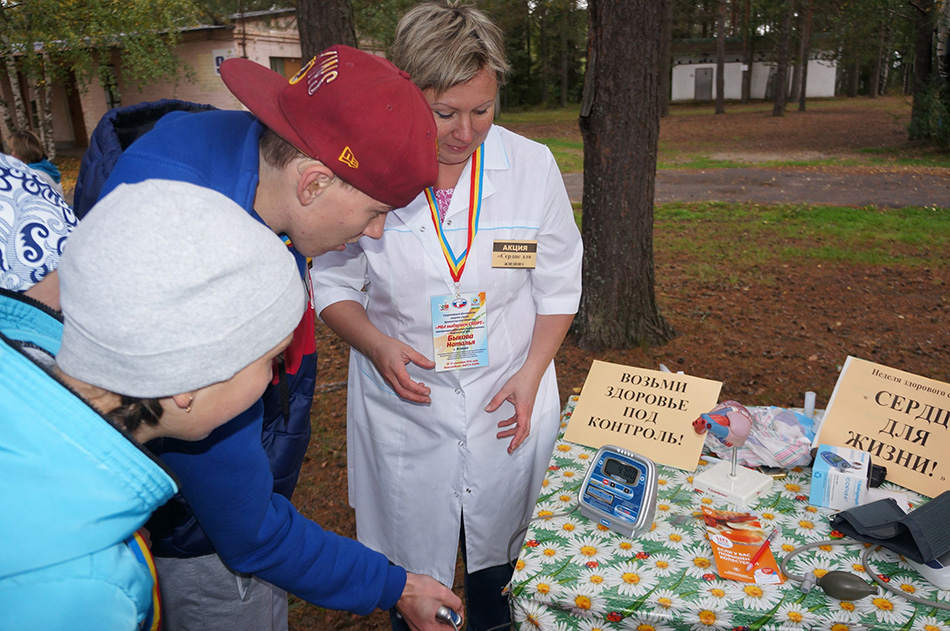В природных условиях под соснами Натальей Бюковой был развернут временный пункт измерения артериального давления. В перерывах спортивных состязаний «БОЛЬШИХ гонок» каждый участник фестиваля смог измерить артериальное давление, пульс. Всем участникам акции были даны информационные буклеты по профилактике сердечно-сосудистых заболеваний, содержащие рекомендации по профилактике артериальной гипертонии, по оказанию первой медицинской помощи при гипертоническом кризе.