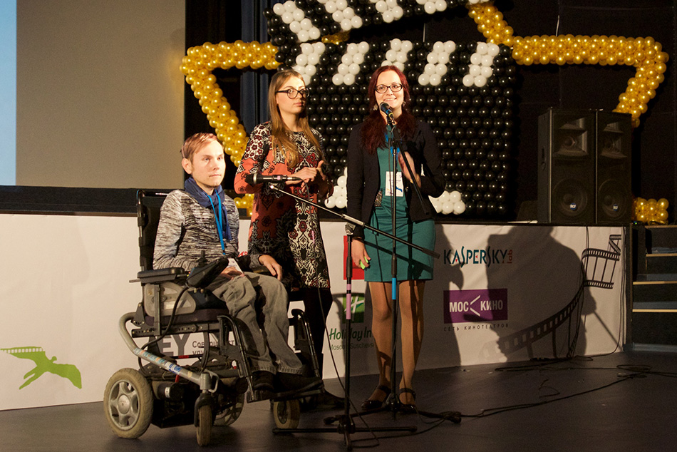 В первый же день фестиваля состоялись показы фильмов из разных стран, и прошло несколько встреч с героями документальных картин. Каждый из зрителей смог задать вопрос Врежу Киракосяну («Глубокое погружение»), Эриннис Ребиц («Взвали на плечи льва»), Евгению Ляпину («Послание»). Герои фильмов выразили признательность аудитории за внимание, режиссерам – за создание позитивного образа человека с инвалидностью и верное отражение их жизни и идей. «Главные формы подачи информации о людях с инвалидностью в нашей стране – это либо «бедный, давайте все поможем», либо «герой, памятник надо ставить». А главное достижение фильма «Послание» в том, что в нем я, человек с инвалидностью, просто человек – с плюсами и минусами, успехами и неудачами. В этом, я считаю, главная заслуга режиссера Дарьи Гнашко», – отметил Евгений Ляпин, давний участник направления по развитию лидерских качеств у подростков с инвалидностью РООИ «Перспектива».