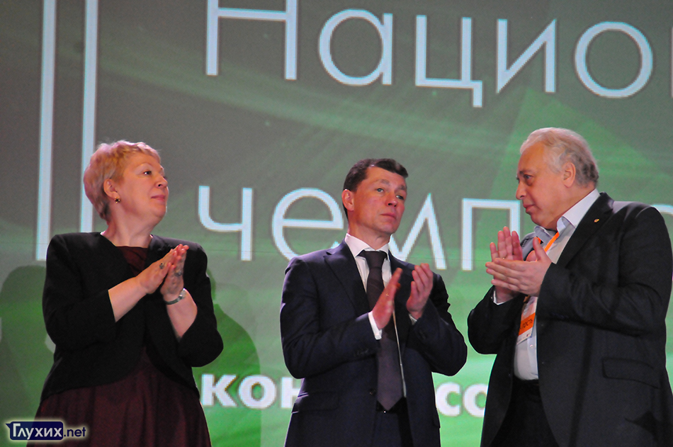 Сегодня на открытии II Национального чемпионата конкурсов профессионального мастерства для людей с инвалидностью «Абилимпикс» присутствовали глава Министерства труда и социальной защиты РФ Максим Топилин, глава Министерства образования и науки РФ Ольга Васильева, президент АНО «Абилимпикс» Лидия Фролова, президент Всероссийского общества глухих Валерий Рухледев, вице-президент ВОГ Станислав Иванов и другие гости.