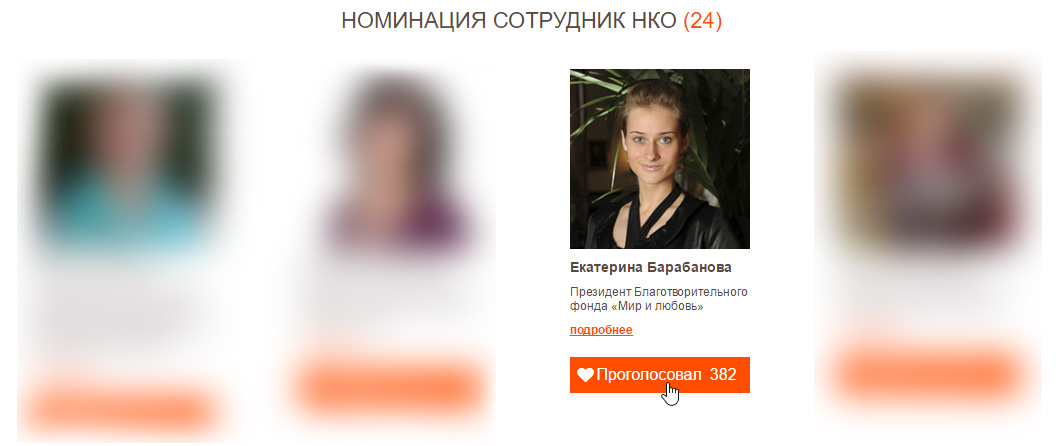 В списках номинантов проголосовать за Екатерину Барабанову.