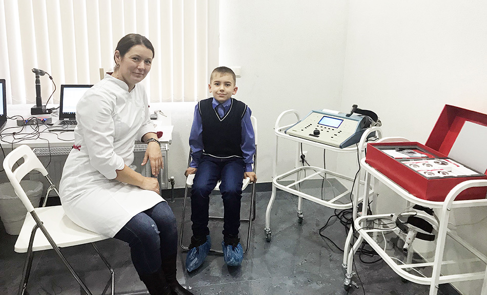 Саше Олейник 9 лет. В 10 месяце он переболел ОРВИ в тяжелой форме, после чего у мальчика развилась тяжелая двусторонняя сенсоневральная тугоухость, практически – глухота. При таком диагнозе слуховые аппараты, даже самые мощные, не могут компенсировать потерю слуха. В полтора года Сашу прооперировали, установили систему кохлеарной имплантации.