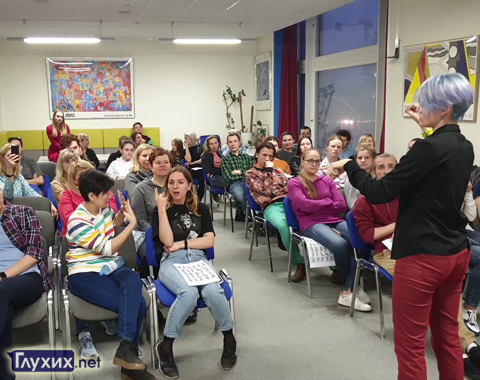 10 апреля 2019 года в столичной библиотеке иностранной литературы состоялся первый мастер-класс Алины Лупооковой по изучению международных жестов. Желающих было много, что конференц-зал еле вместил всех гостей. И это при том, что не все люди успели записаться на мастер-класс.