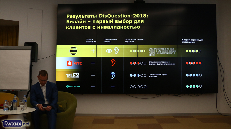 • Бесплатные 60 минут онлайн-сурдоперевода в месяц (для пользователей с нарушениями слуха) – для возможности обеспечить надлежащую коммуникацию в случае разговора с врачом или при ДТП, вызов служб МЧС, получении консультаций в сервисных центрах и т. п. Запуск онлайн-сурдоперевода в перспективе 2019 года.