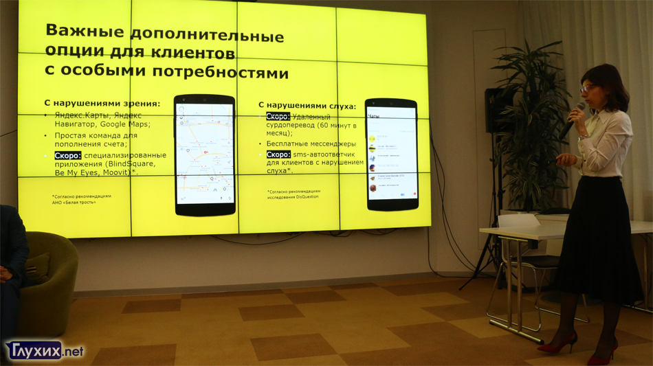 • Бесплатные карты и востребованные клиентами с нарушениями зрения сервисы геолокации: Яндекс.Карты и Google Карты, blindsquare, Be My Eyes (запуск в перспективе 2019 года)