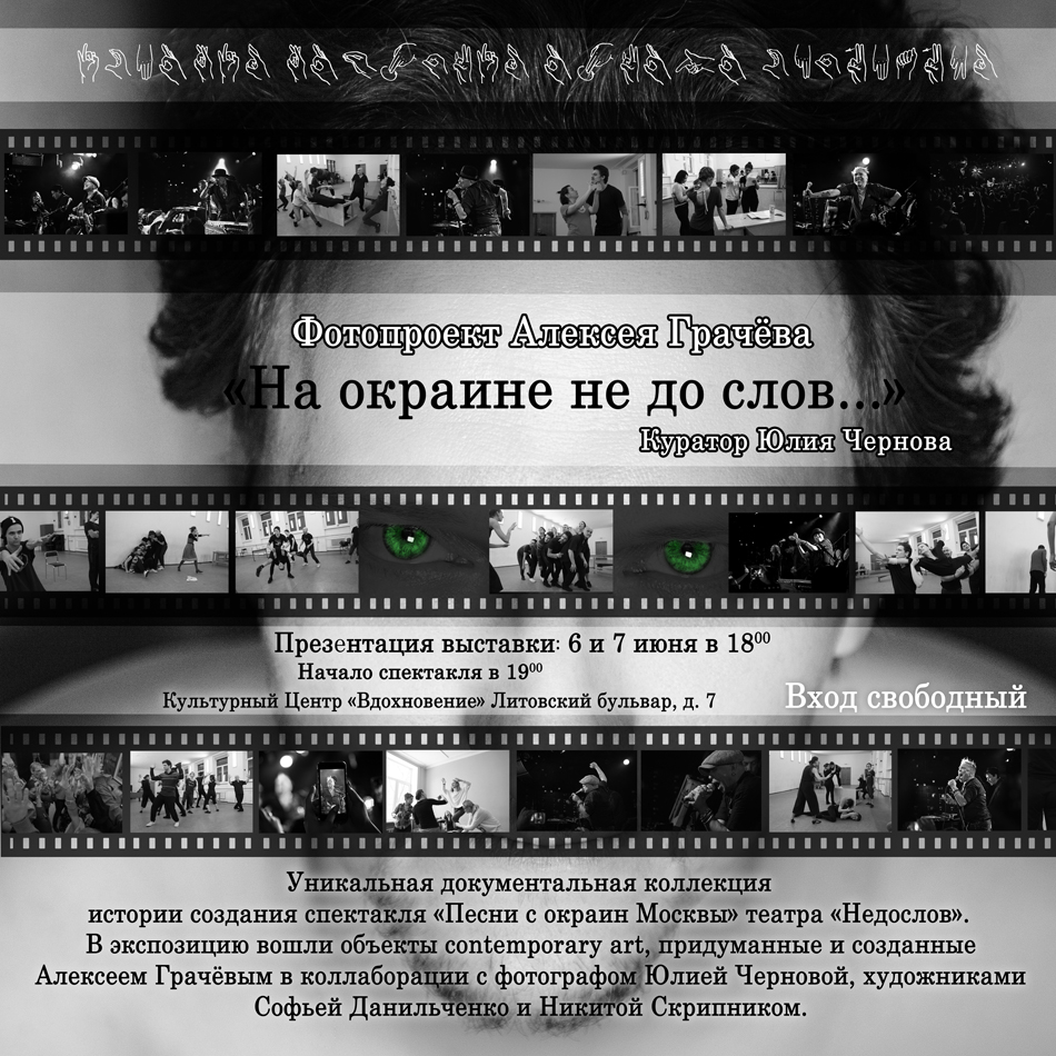В рамках презентации спектакля, состоится открытие фотовыставки Алексея Грачёва «На окраине не до слов» (Куратор Юлия Чернова).