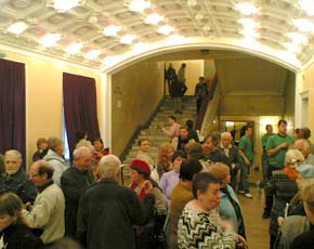 В вестибюле Дома культуры была представлена информация по выдаче реабилитационной техники для глухих людей. Люди, пришедшие в ДК, в первую очередь стали общаться: