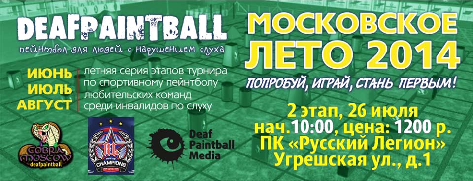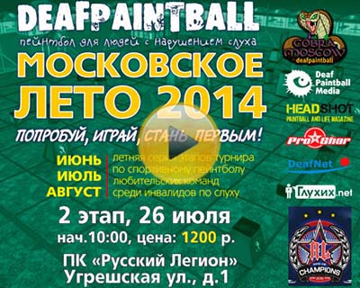 Второй этап турнира по пейнтболу среди глухих «Московское лето 2014» пройдёт 26 июля 2014 г. В рамках турнира состоится бонусная игра «Дуэль». Целью бонусной игры «Дуэль» является дуэль двух игроков, поражение соперника с профессиональным электронным маркером, любезно предоставлены спортивной командой «Кобра» в течение одной минуты, в случае истечения времени – оба выбывают из игры.