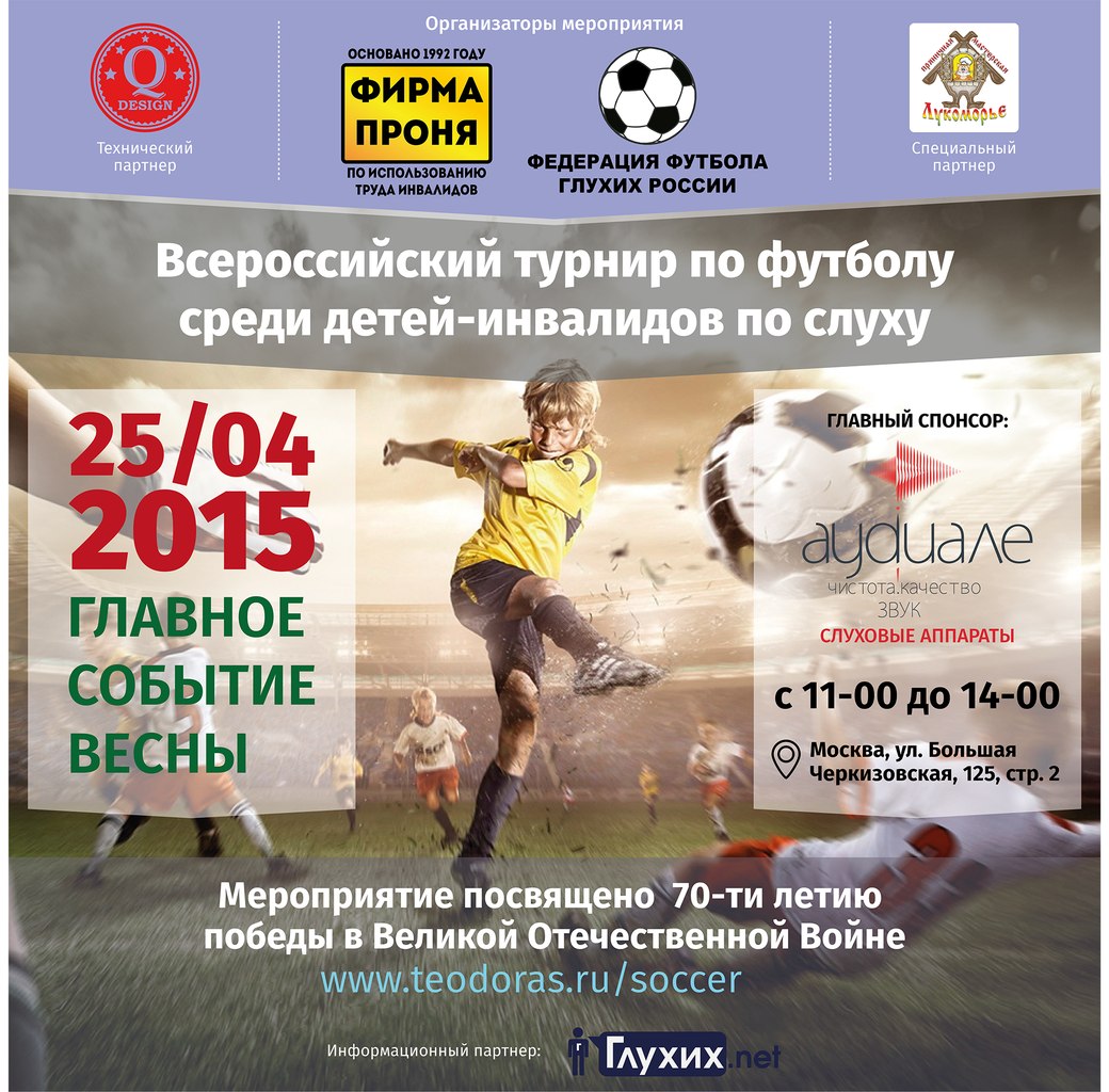 Программа турнир по футболу среди глухих и слабослышащих детей - 11:00. Открытие. Приветственное слово президента Федерации футбола глухих России.