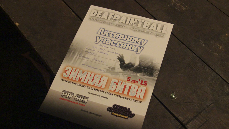 В начале декабря состоялся тактический пейнтбол среди глухих «Зимняя Битва» на знаменитой, в кругу пейнтболистов, базе отдыха ТОПГАН, что неподалеку от Сергиева Посада.