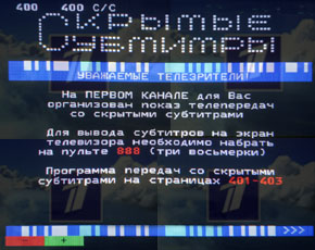 на «Первом канале» возобновилось вещание скрытых субтитров. Напомним, что скрытые субтитры на 1-м канале были приостановлены 13 апреля 2010 года. Как