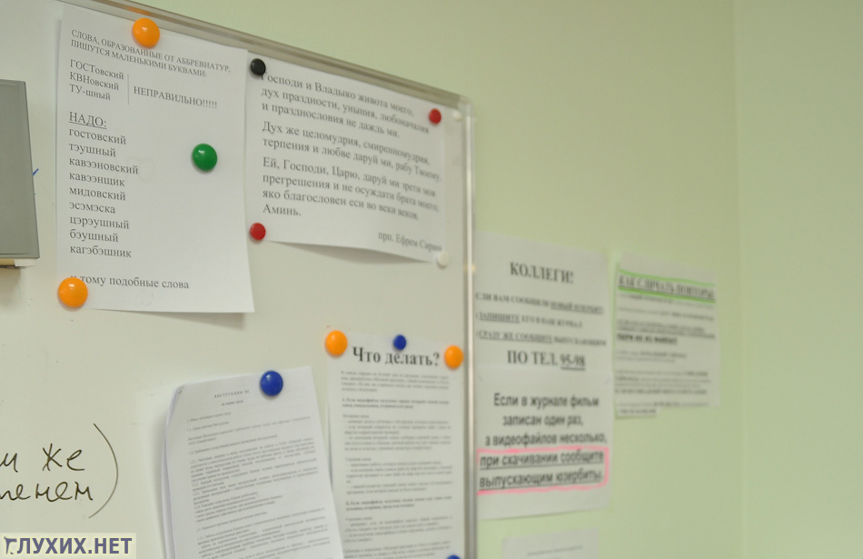 интернет-портала «Глухих.нет» посетили этот отдел для того, чтобы узнать, как организован процесс производства субтитров. Подробно о работе отдела нам рассказала