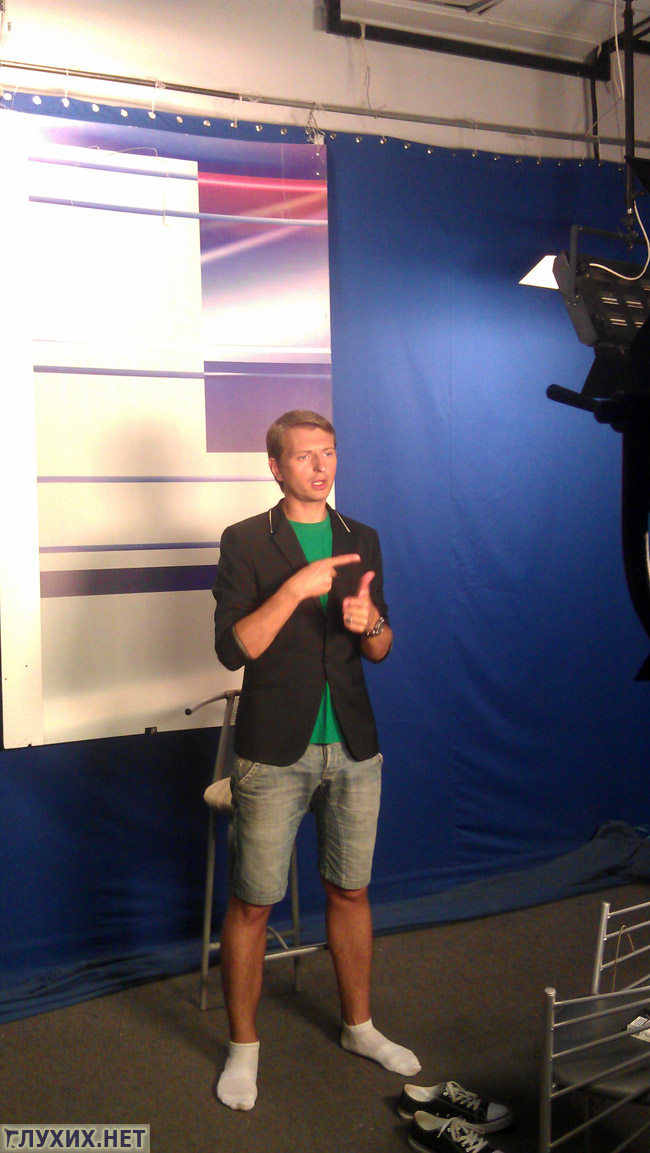 И пока глухие киевляне дома с комфортом попивают чаёк и включают телевизор, Игорь, тем временем, надевает свой любимый пиджак и готовится к выходу в эфир.