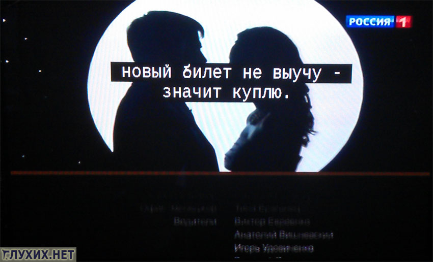 на стр. 200−209 и на нашем сайте. «Глухих.нет» сообщал, что «Первый канал» переходит на новую технологию вещания скрытых субтитров. Уже сейчас телезрители могут заметить, что в некоторых телепередачах титры стали отображаться в две строчки увеличенным размером, что очень удобно для чтения, особенно в маленьких «ящиках» и в тех телевизорах, которые не имеют функцию увеличения размера субтитров в 2 раза.