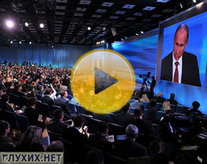 пресс-конференция с участием Президента России В. В. Путина. Пресс-конференция Владимира Владимировича Путина длилась 4,5 часа. На пресс-конференции было аккредитовано более 1000 российских и около 200 иностранных журналистов. Среди вопросов, которые прозвучали на этой пресс-конференции, был и вопрос, который касался мира людей с нарушениями слуха.