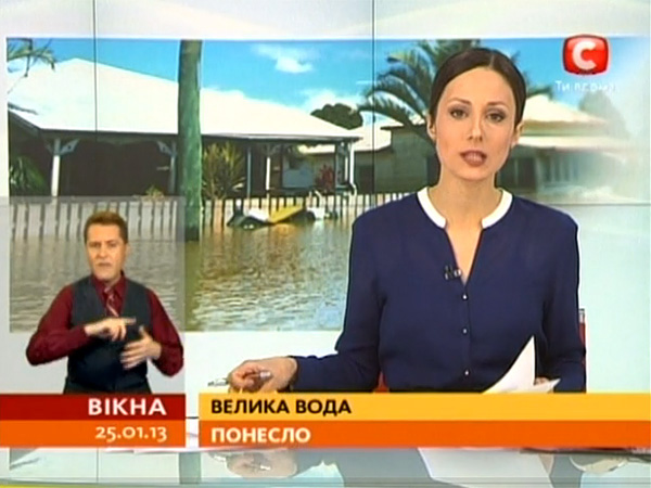 Так выглядит сурдоперевод на украинском канале СТБ. Разницу в размере кадра переводчика ЖЯ можно заметить невооружёным взглядом.