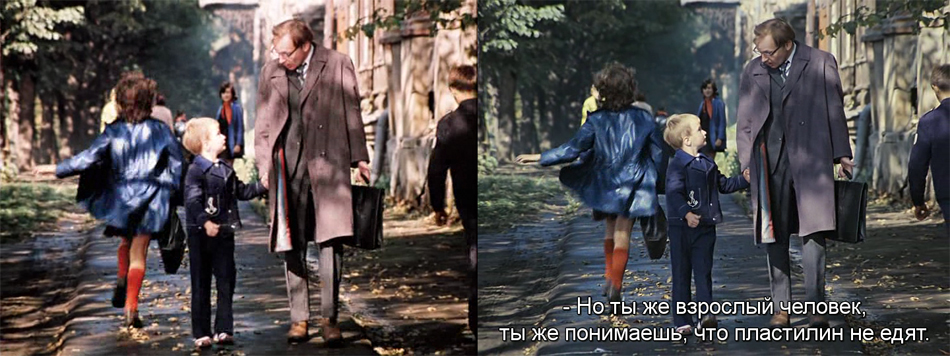 А ведь советские фильмы хвалят и пересматривают помногу раз, благодаря не только хорошей игре актёров, но и шикарным словам – не секрет, что многие слова разобраны на цитаты. Давайте сравним оригинал с субтитрами.