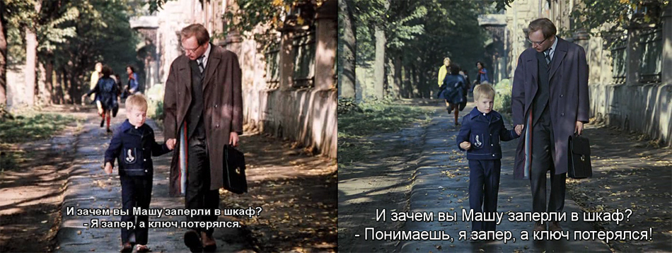Кто будет отвечать за это безобразие? Проверял ли субтитры «Мосфильм»? Как могли допустить к выпуску безграмотные субтитры к таким шедеврам? Ведь эти титры испортили золотую эпоху советских фильмов XX века.